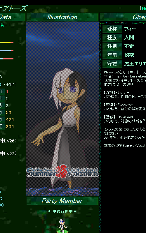 誰も居なかったら一人で歌ってるよ! 〆切:2/4ぐらいかな!多分予約しないだろうし 参加応募方法:ここにコメント、もしくは偽島のファイ(898)へ伝言、もしくはツイッター@Ikka6宛に@でも飛ばしてくださいな 場所:新宿のどこかのカラオケ屋(超未定) 時間:11時か12時~18時か19時辺り 金額:2千円以内で収めたい やること: 歌うよ! 2/6の韮部参加の関係でボドゲとか持っていく予定なので 人がそれなりに集まったらそれも良いかもね! こんな感じ!いっつアバウト! こんな募集で大丈夫か? あ、あと新宿か八王子付近で一泊出来そうな良い場所が有れば教えて欲しいです(切実 PR |
